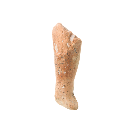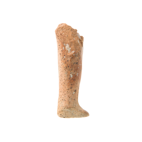 | ОПИС: | Нижня частина ноги стоячої фігури.Збережена чітко змодельована стопа. Поверхня добре загладжена. Висота збереженого фрагменту – 4 см. |