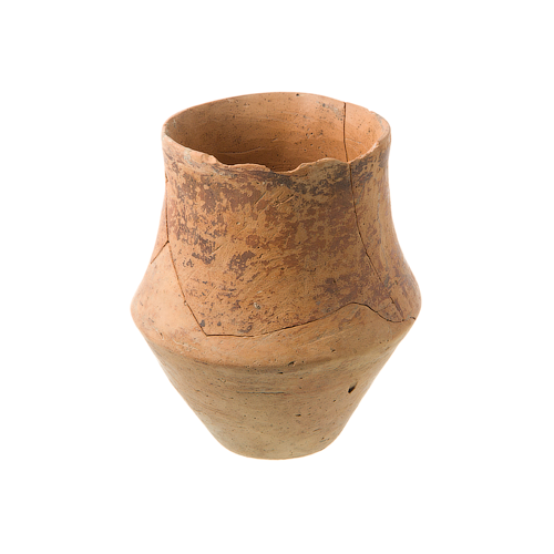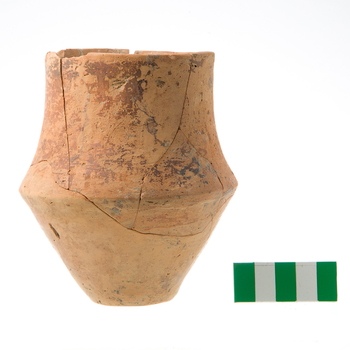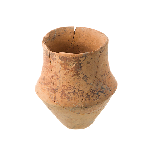 | ОПИС: | Тонкостінний кубок середніх розмірів. Випал міцний, рівномірний. За формою посудина має плавний профіль, прямі вертикальні вінця і низько розташовані округлі плечики. Збереглися фрагменти покриття зовнішньої поверхні ангобом.Схема малюнка (мало збережена) складається із широкого орнаментального поясу від вінець до плічок. |